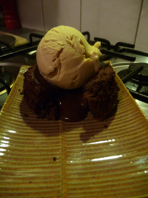 So once your subtle brown sugar ice-cream (or essence of cookie, as I call it) hits the hotly deliquescing interior of your pudding-cake, you have attained ULTIMATE COOKIE. The sweetest, gooiest chocolatiest morsel of goodness. All the best things about a cookie, the sweet chewy crisp sugar flavour, and the pockets of melting chocolate, only times 100. It will never be a cookie, but it’s a damn fine take on it.You wanted sugar hit? You got it baby.