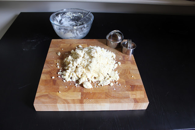 - Mix the flour, salt, baking powder and sugar in a bowl. Grate the butter into these dry ingredients periodically tossing the butter with the flour as you go – I use a fork. Whisk the egg into the cream, and pour into the flour mixture a little at a time, using the same fork to mix. You should end up with a soft, slightly sticky dough