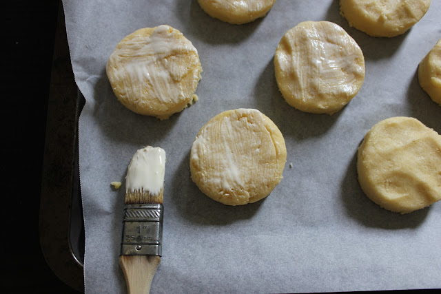 This recipe is laughably straightforward, like scone dough, but with much, MUCH more butter. I cannot make any claim as to the authenticity of the recipe that I have used, though I can vouch authentically for its deliciousness. I would liken the cakes that this recipe produces more to shortbread, than to any biscuit or scone recipe. As I say, they are choc full of butter, and you really get to enjoy the flavour therein. An egg and some baking powder do an admirable job of lightening the mix though, so they really are cakes; soft and tender rather than crunchy.