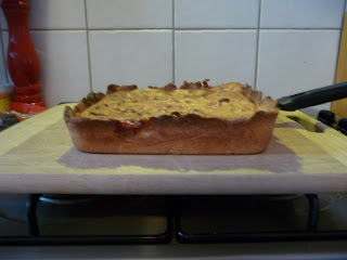 So, although my Bakewell tart has some issues with appearances, that is to say, it’s a bit of an eye-sore, it did indeed bake well. I guess they weren’t calling it that for nothing. After the initial disaster with the pastry where, upon finding I was lacking a pie or tart dish of anywhere near the correct proportions, I went with a square tin, it was fairly smooth sailing. I slapped my pastry into the tin, hastily patched up the sides as best I could, which was not very best, and then put it straight into the freezer. Tip No. 1 with Pastry – play it cool. After my fears of imminent disaster passed (10-15 minutes) I whipped the pastry out and slathered it with a layer of rasberry jam and a pile of frozen raspberries. Tip No. 2 – lavish gifts. After that, quickly back into the freezer while I made the frangipane mixture of almonds, eggs, sugar and butter, to go on top of the berries.